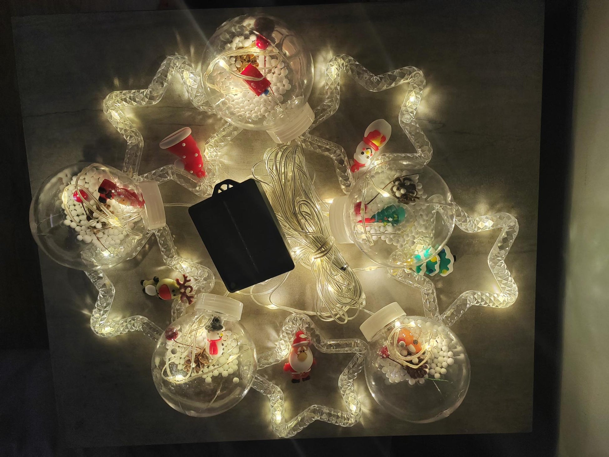 🌟Guirnalda navideña solar con estrellas y esferas ambar - Fotos reales
